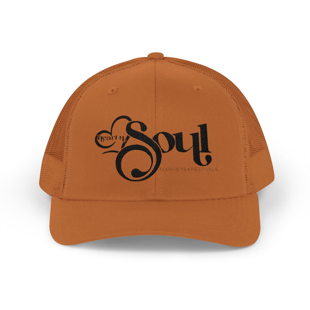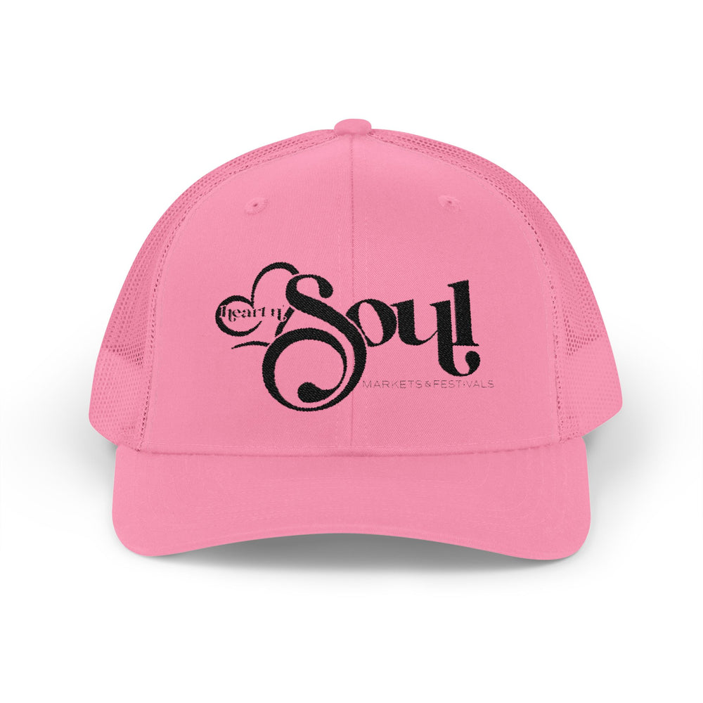 Lightweight and laid-back, this structured mid-profile trucker cap blends vintage charm with everyday comfort. A hard-buckram front holds the bold ‘Soul’ script in place, while the breathable mesh back keeps air flowing during long days outdoors. The pre-curved Permacurv® visor and matching undervisor reduce glare and add a classic silhouette. An adjustable plastic snap closure lets you fine-tune the fit, and a soft cotton sweatband keeps you dry. Wear it to finish a casual outfit, shield your eyes on a sunny drive, or show a bit of expressive flair on a weekend wander.Product features- Structured six-panel, mid-profile design with hard buckram front- Permacurv® pre-curved visor with matching undervisor and eight-row stitching- Breathable 100% polyester mesh back to reduce heat and sweat- Adjustable plastic snap closure and sewn-in Yupoong label for size customization- Front/visor blend 60% cotton–40% polyester with 100% cotton sweatband for comfortCare instructions- Use warm water and dish soap and clean spots off your hat. It's not necessary to soak the whole item. For hard to clean spots use a soft bristled brush.